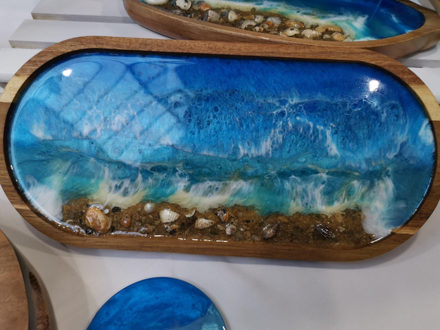 Wooden trays approximately 20cm x10cm, ideal to carry two to three cups. Each has its own individual seascape designs from seascapes in various colours.