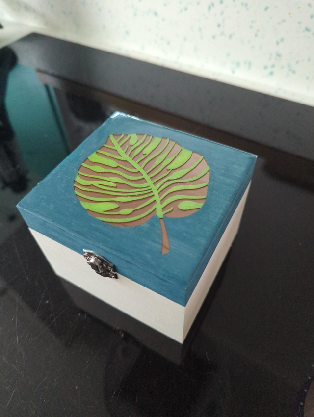Wooden box with resin seascape design on the lid. Each item is handmade so the will differ.